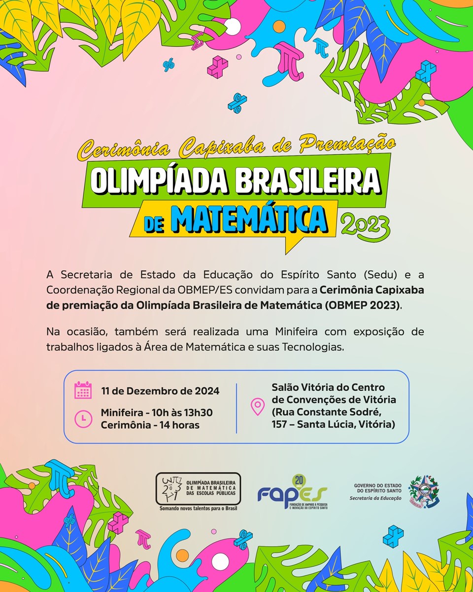 Cerimônia Capixaba de Premiação da Olimpíada Brasileira de Matemática das Escolas Públicas e Privadas (OBMEP 2023) e Minifeira de Matemática e suas Tecnologias