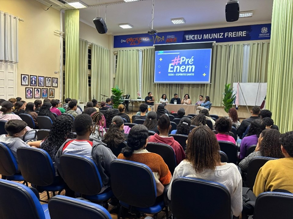 A atividade foi promovida no Centro Estadual de Ensino Fundamental e Médio em Tempo Integral (CEEFMTI) Liceu Muniz Freire, unidade que sedia o polo do Pré-Enem da Sedu no município.