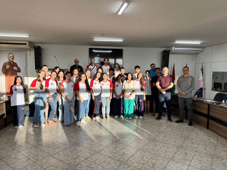 Recepcionados pelo presidente, vice-presidente e gerente legislativo da Câmara, os estudantes puderam conhecer os espaços da Casa de Leis, entender como funciona uma sessão e aprender sobre o papel dos vereadores, os trâmites legislativos e a importância da representatividade política para o desenvolvimento da cidade.