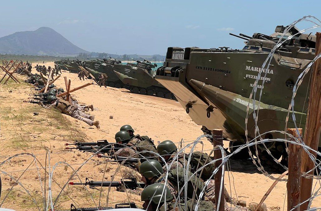 O ponto central da etapa Atlas Anfíbia ocorreu nesta segunda-feira (1º), na praia de Itaoca (ES), com o desembarque anfíbio utilizando Carros Lagarta Anfíbios (CLAnf), blindados capazes de realizar a transição mar-terra. As ações incluíram tomada de cabeceira de praia (área inicial conquistada na faixa litorânea após o desembarque), emprego de drones táticos, reconhecimento, progressão terrestre e apoio de artilharia.